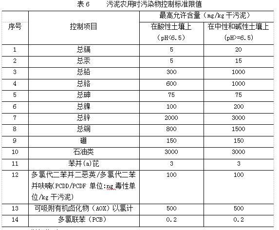 4.3.4處理后的污泥農(nóng)用時,其污染物含量應滿足表6的要求。其施用條件須符合GB4284的有關(guān)規(guī)定。