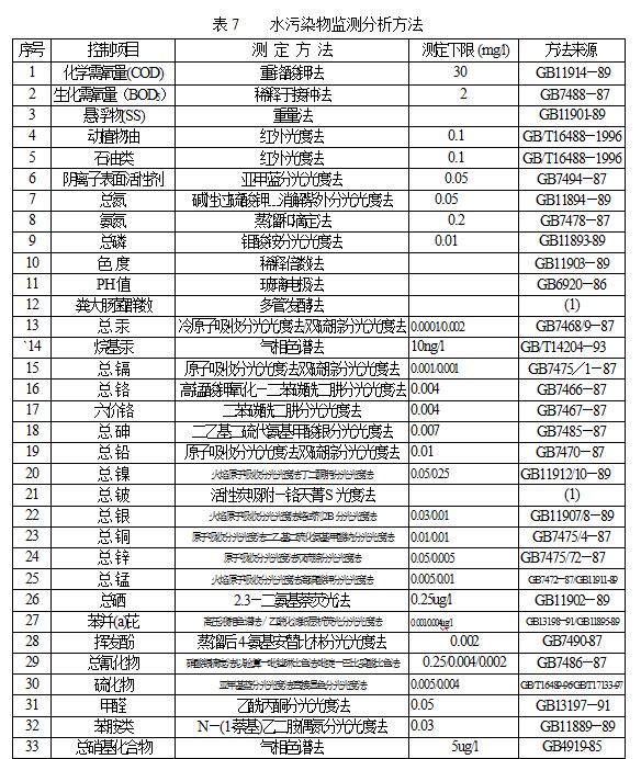 4.1.4.3監(jiān)測分析方法按表7或國家環(huán)境保護總局認定的替代方法、等效方法執(zhí)行。